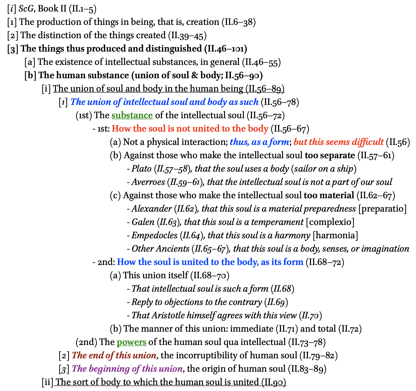 The upcoming chapters add nuance and complexity to Aquinas’s account, if one can imagine that. Excerpting from a previous outline, ScG, II.73–89 deals with three topics: the intellectual powers of the human soul in more detail, and then the end of soul-body union as well as its beginning.