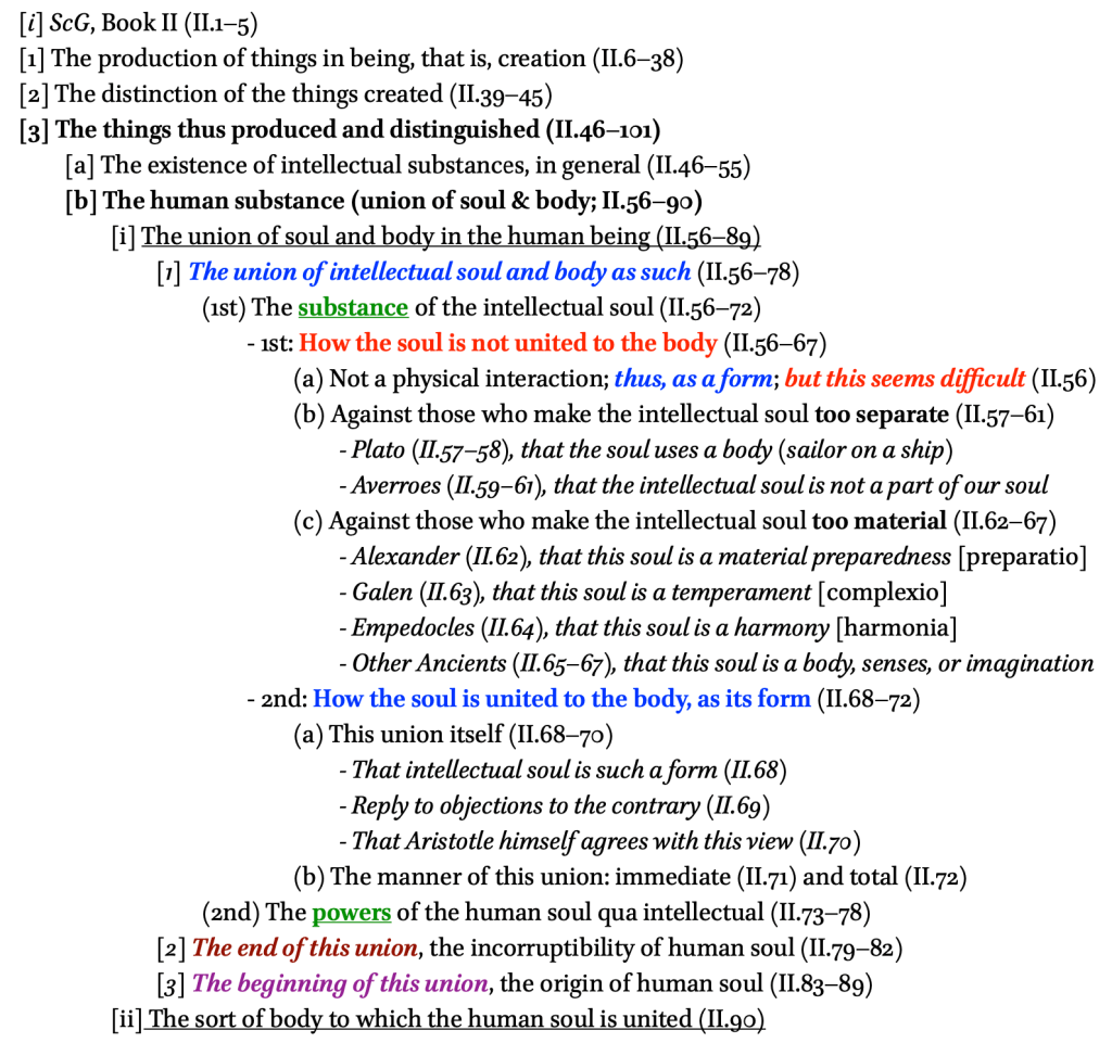 Our main question for next time will be to follow St. Thomas as he makes good on his promise to show how the human intellectual soul is united to the body as its form. Note the overarching “negative induction” with which he begins ScG, II.68: